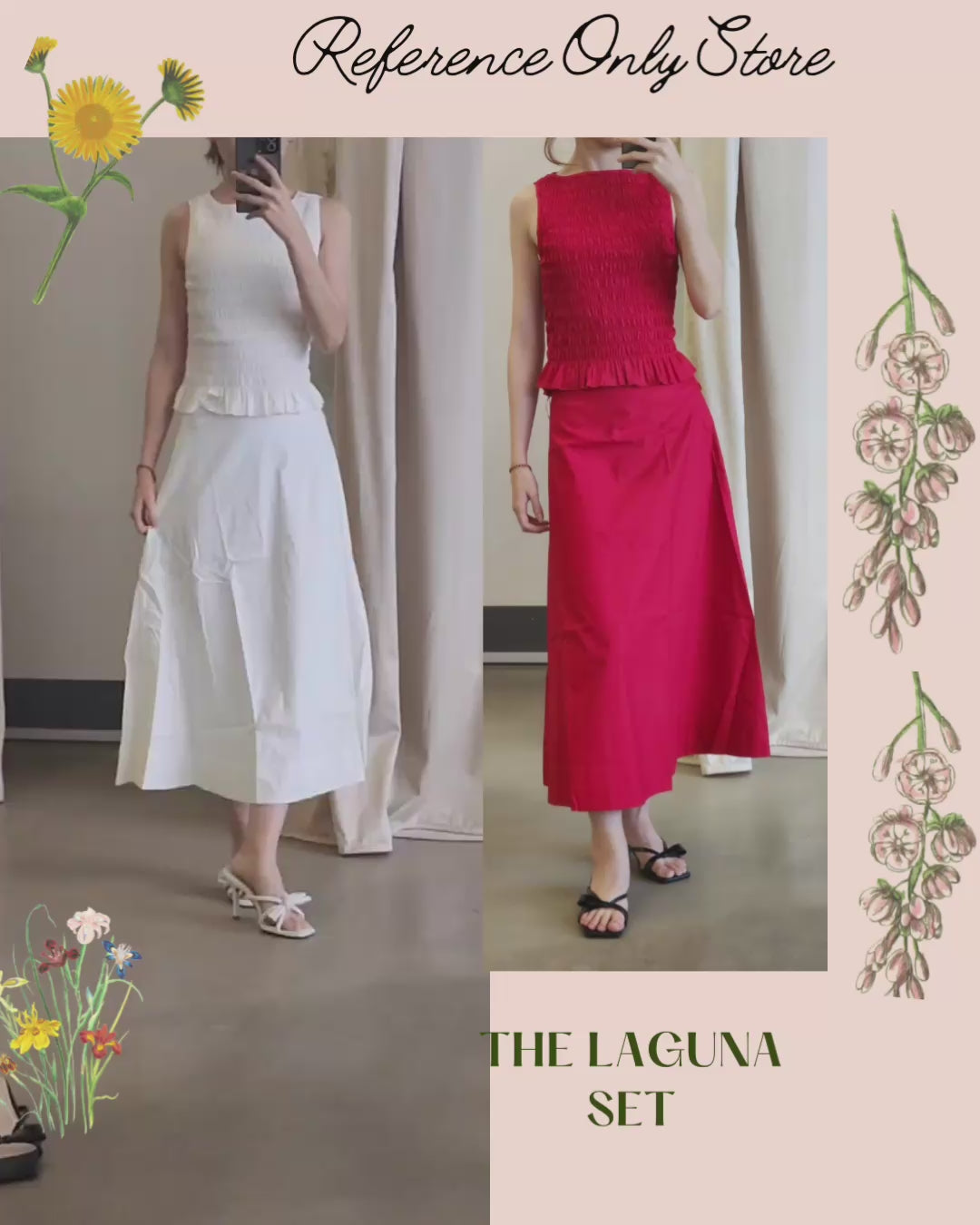 3 colors! Ref Laguna Cotton top and midi skirt set