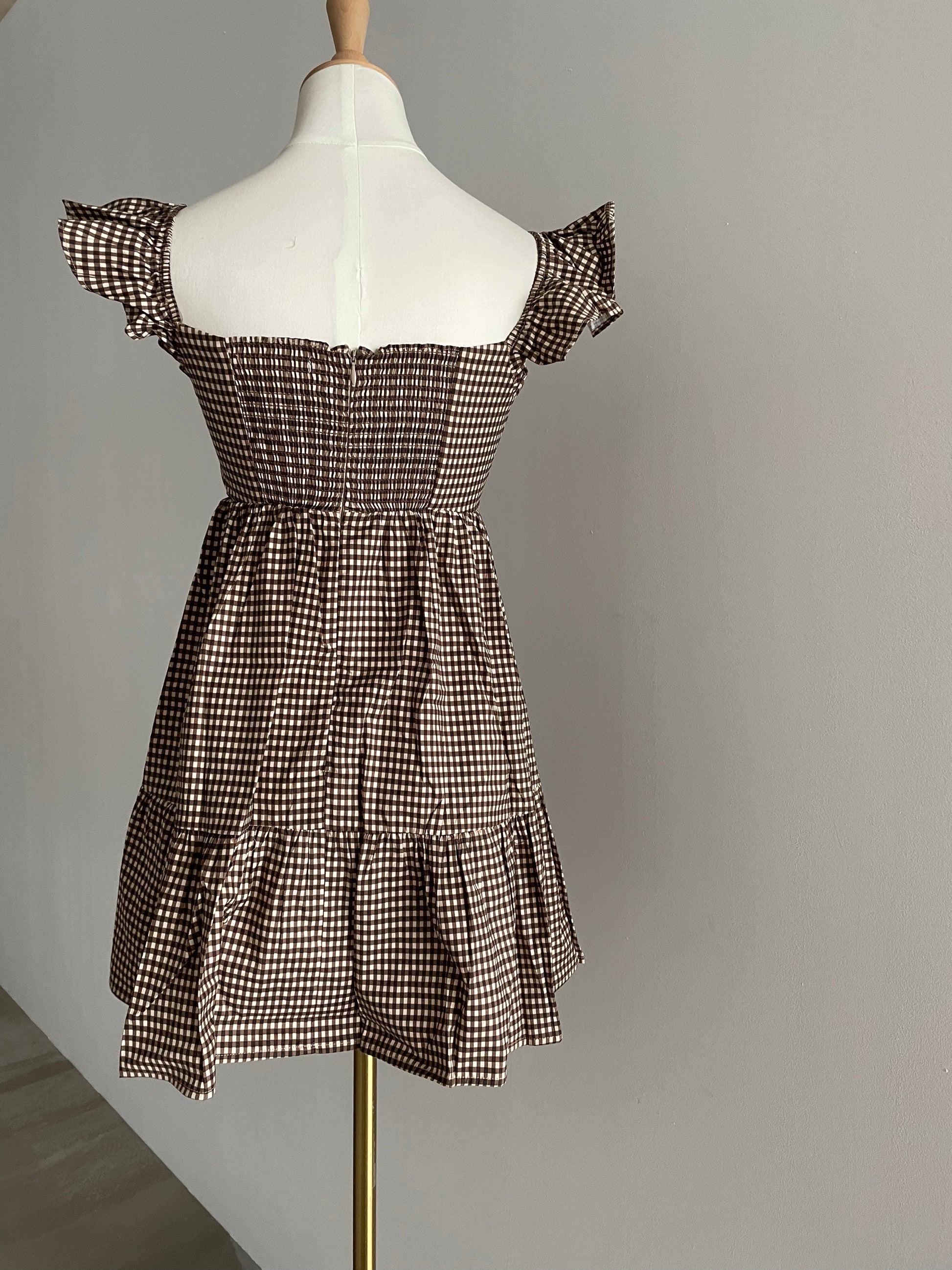 Readystock! Ref Jeune Mini Brown Gingham Dress