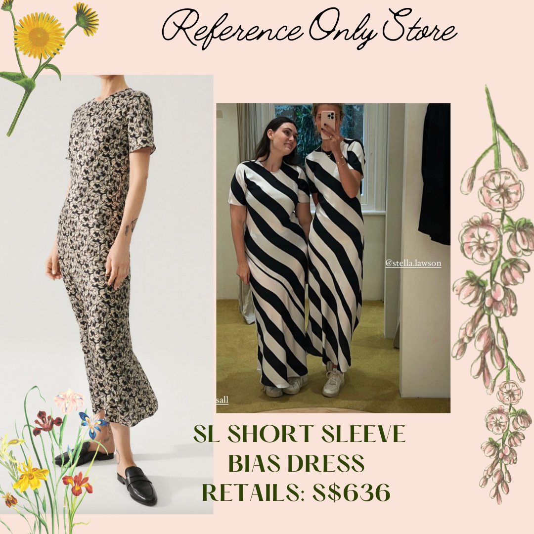 SL Short Sleeve Bias Silk Dress in Pelicans | Black Stripe