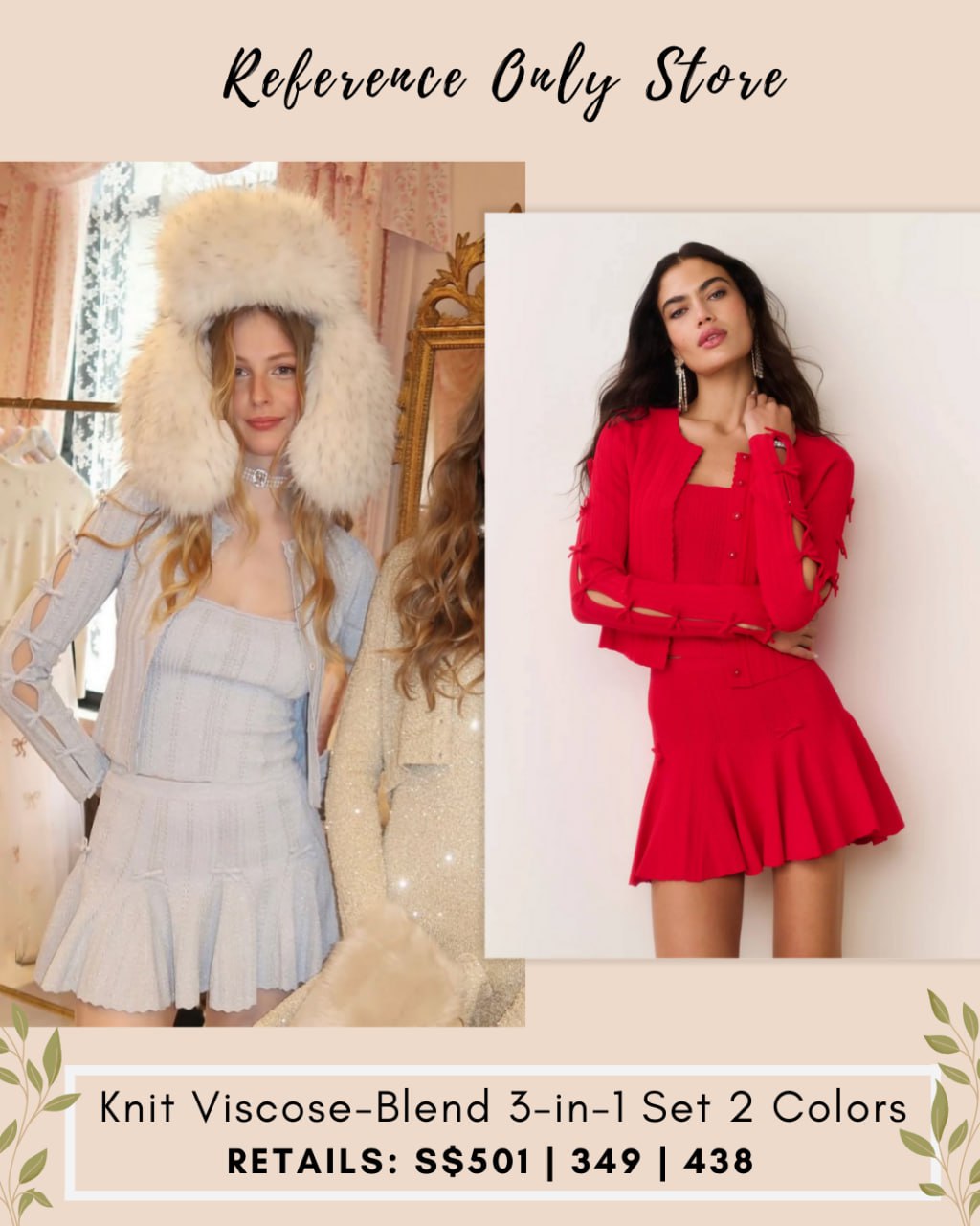LSF Knit viscose blend set cardigan skirt camisole in 2 colors