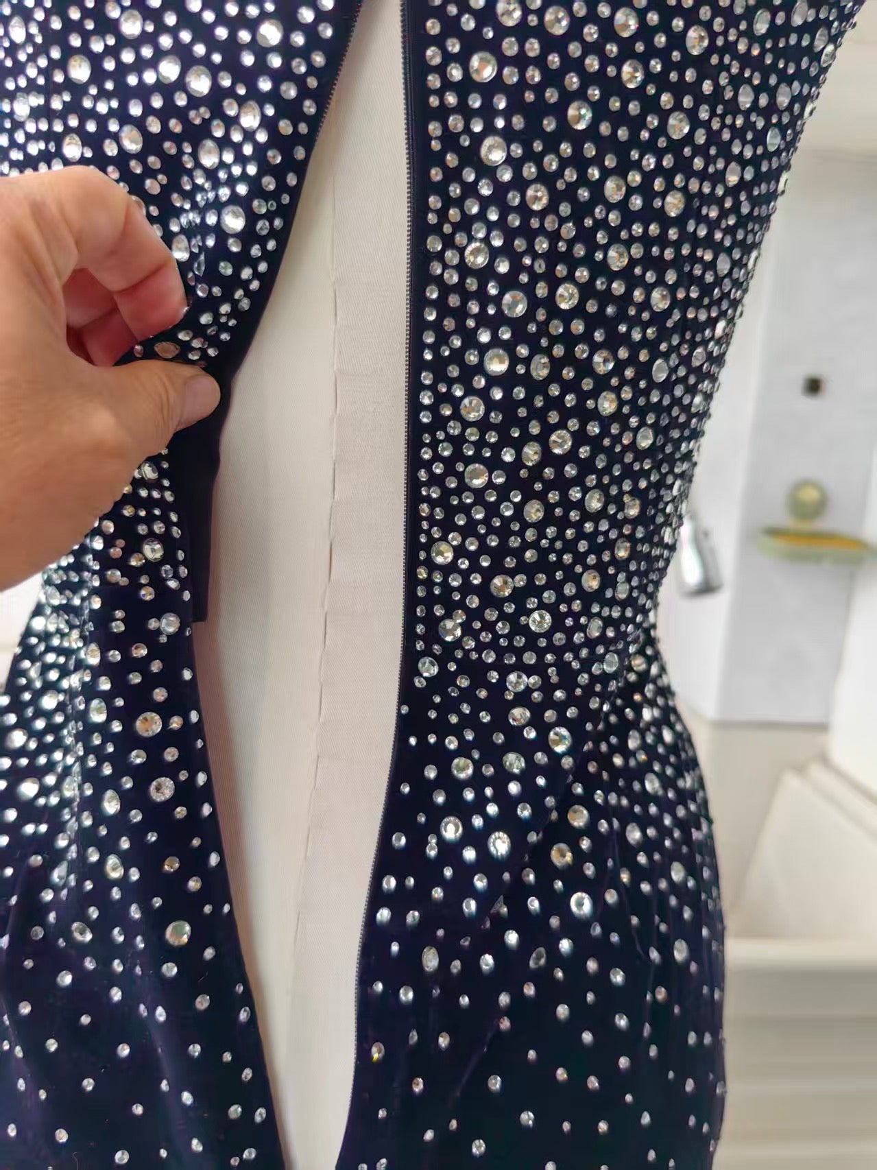 AP Strapless sweetheart. Crystal velvet mini dress