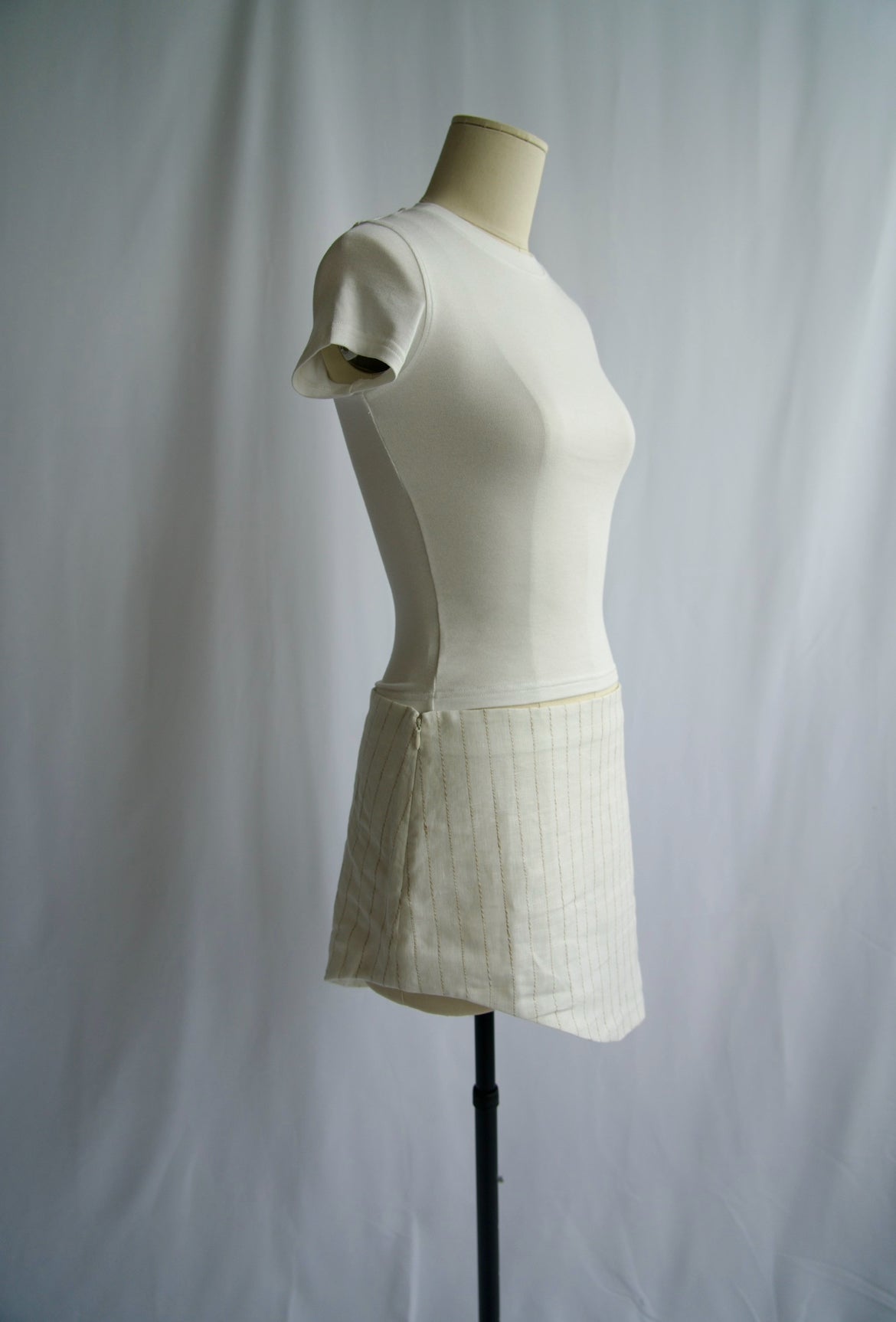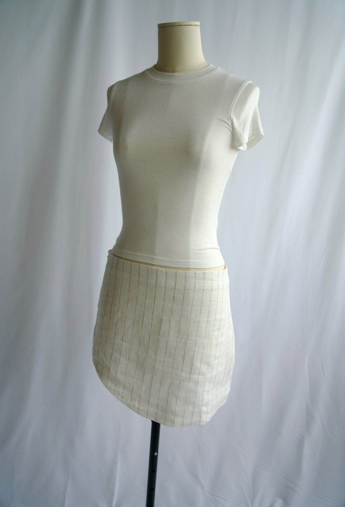A chic little mini skirt- we do think this skirt is just the right amount of scandalous. She is designed as part of a set with the Madrid vest, and the curve on the skirt is nicely complemented by the sharp lines of the vest.